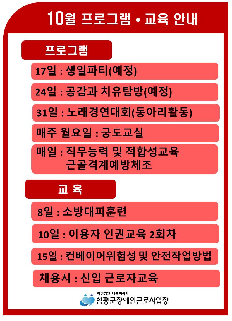 10¿ù ÇÁ·Î±×·¥ ±³À°¾È³»