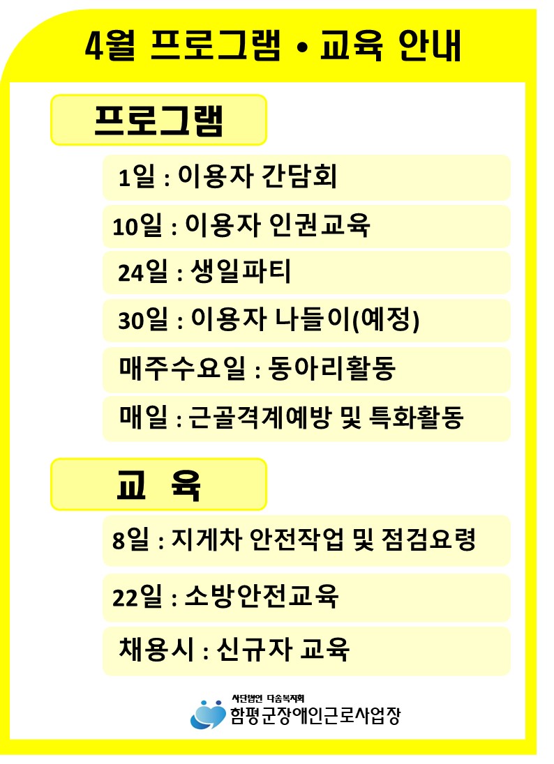 4¿ù ÇÁ·Î±×·¥ ±³À°ÀÏÁ¤