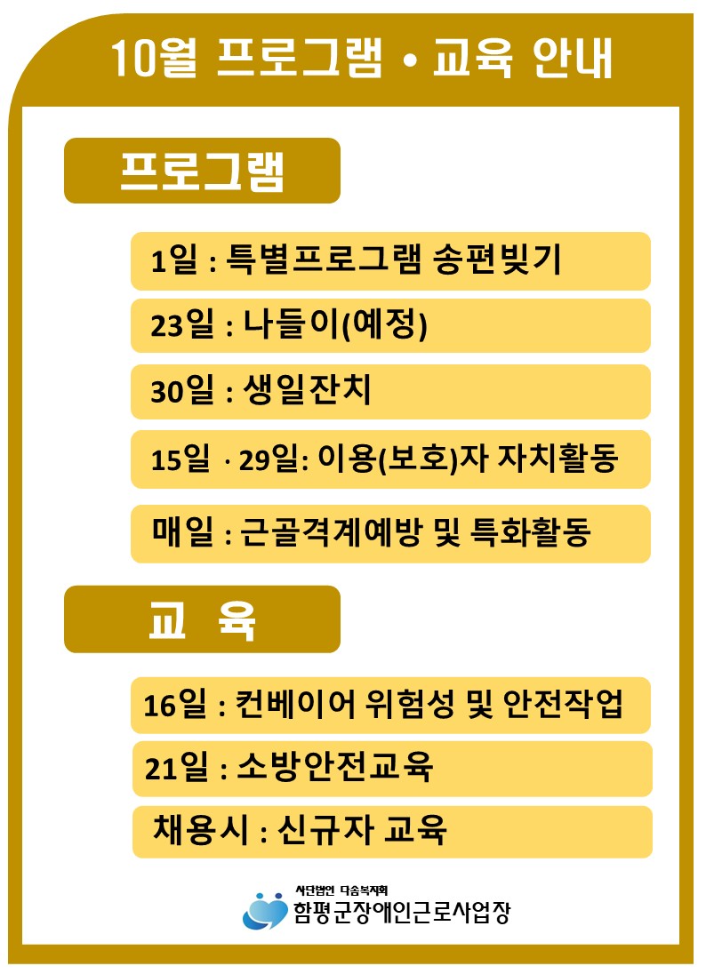 10¿ù ÇÁ·Î±×·¥ ¹× ±³À°ÀÏÁ¤
