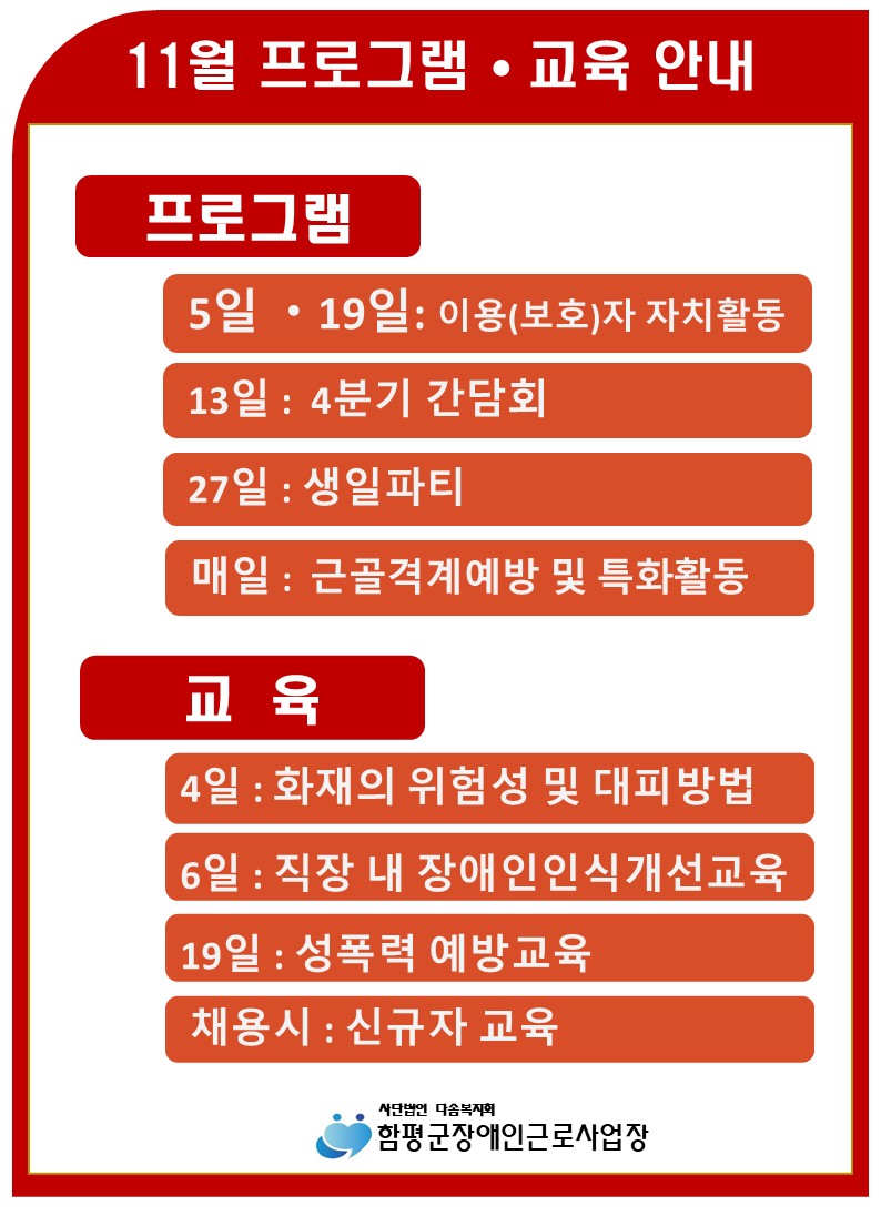 11¿ù ÇÁ·Î±×·¥ ¹× ±³À°ÀÏÁ¤ ¾È³»