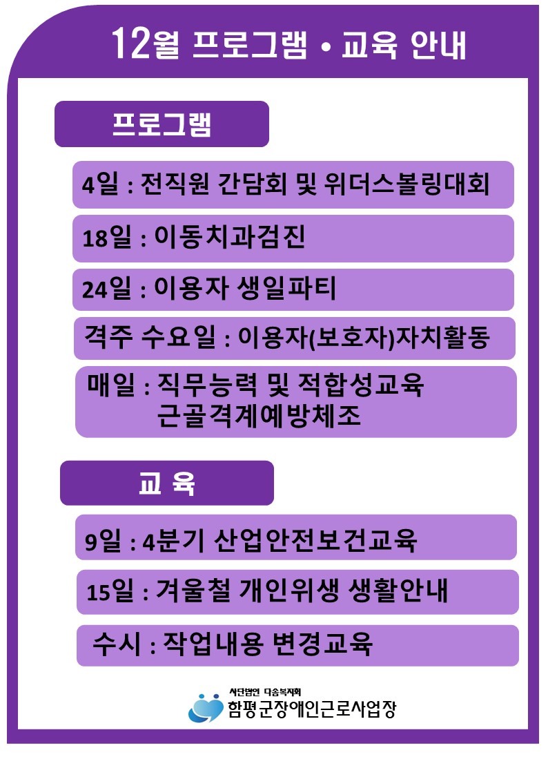 12¿ù ÇÁ·Î±×·¥ ¹× ±³À°ÀÏÁ¤